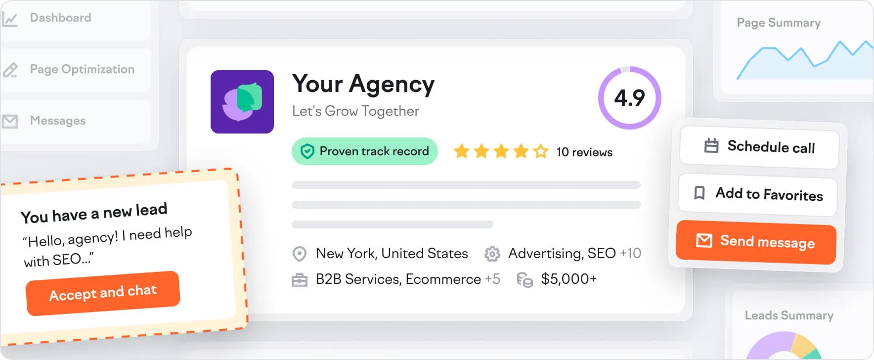 Set up your agency profile and get matched with business owners and executives looking to hire expert help for their marketing projects.