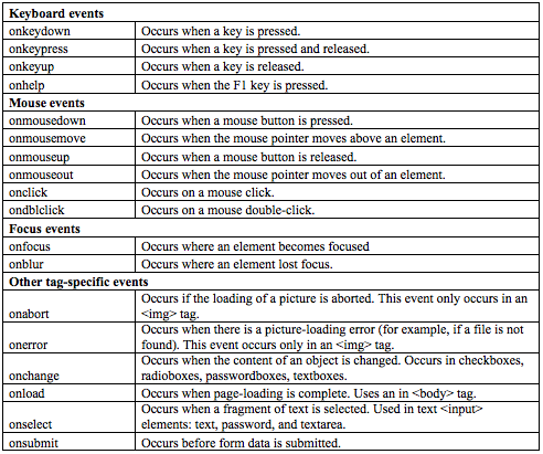 An event is an interaction between user and content. If you have a button on your site or a link to a document download you want to track, you need to set up event tracking. There is a list of HTML events with specific names, and you can choose the event you need by type (mouse click, key click, form submission, etc.). You can view the complete list here: