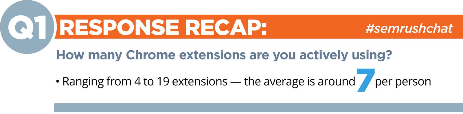 A1: It varies between staff members. We'd say the average of extensions we use is around 4 or 5. #semrushchat
