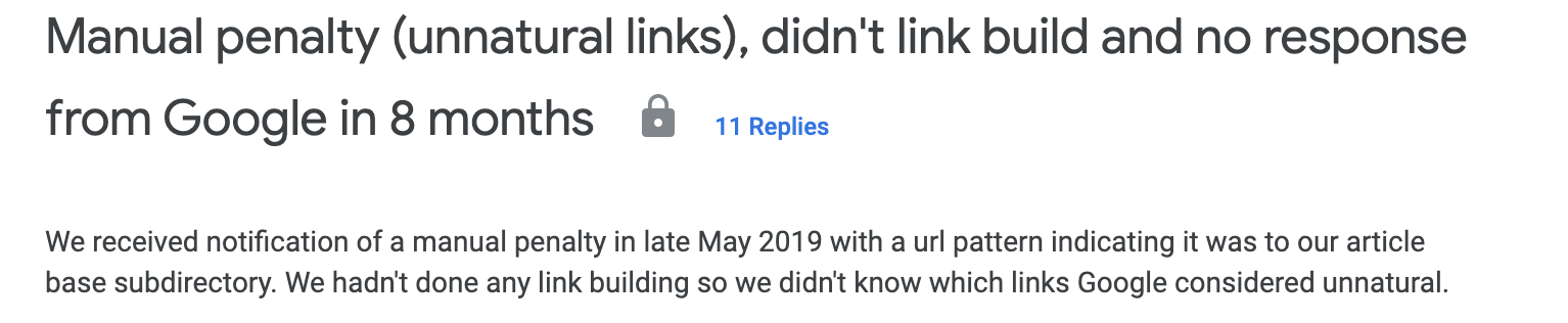 Implicitly, there is no pattern on how Google replies to reconsideration requests. Sometimes it can take days or even weeks to get everything sorted, while other cases can be left unanswered for months — this affects the whole penalty removal process.