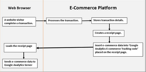 Let's briefly look at the process depicted below to better understand how a transaction is tracked using Google Analytics.