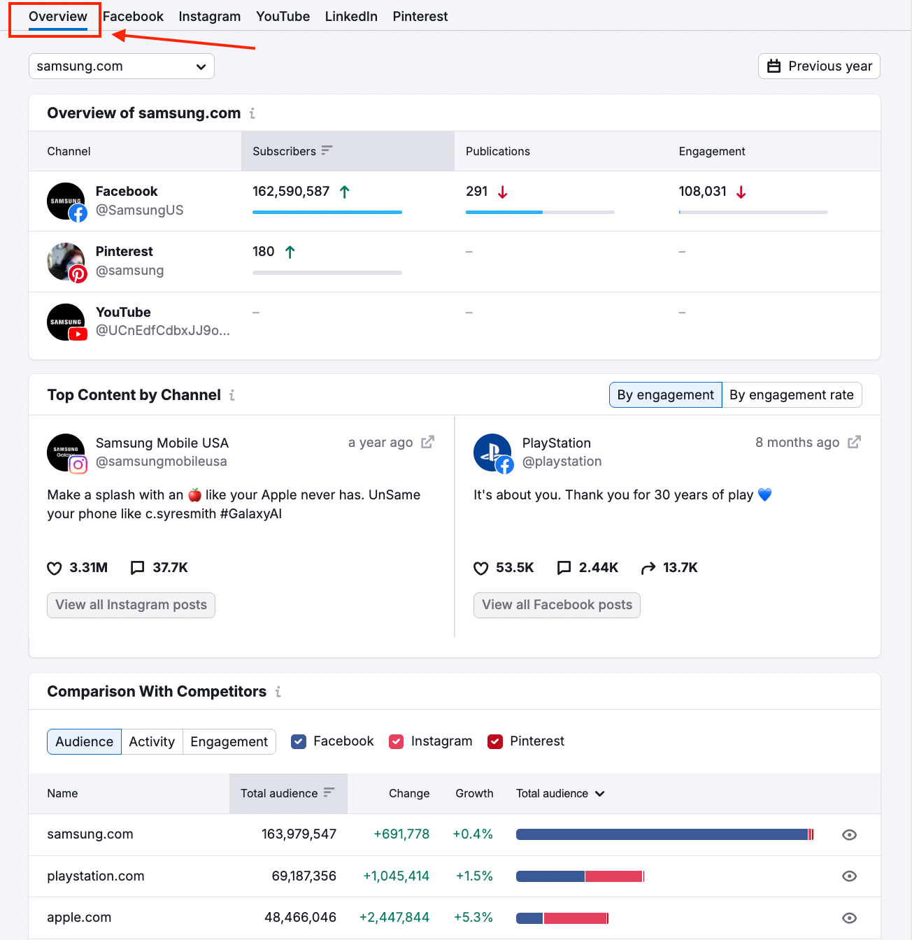 To do this, use the Social Tracker tool within Semrush’s Social Toolkit.