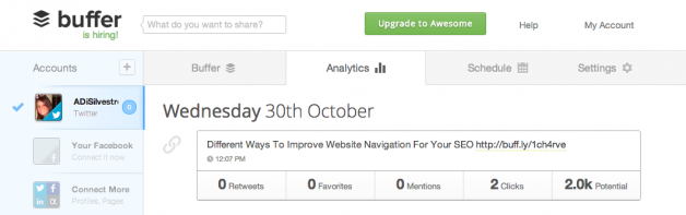- buff.ly. This is a shortener you might see for those who use Buffer. It is another service that gives you a dashboard and allows you to share links right there from their site, and then see real-time analytics. Furthermore, you can create a schedule so you can do all of your social sharing at once without having everything go live at once. Due to the ease of Buffer (it’s not part of Twitter), this is quickly moving up in the ranks of the most popular.